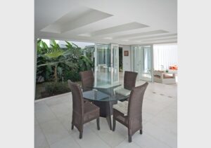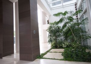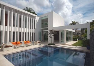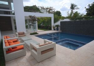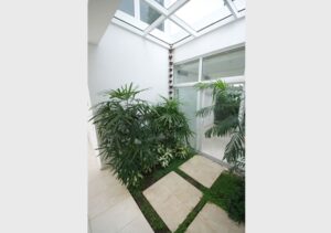 Fue nuestro reto entonces tomar en cuenta estas pautas e interpretar las intenciones para ofrecer un producto muy asociado a nuestra estética. Propio de la manera que tiene el arquitecto Pons de concebir este tipo de proyectos, la residencia se vuelca hacia el patio como espacio vital fundamental y los interiores se abren permitiendo la entrada de luz y la interacción con los exteriores