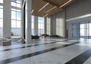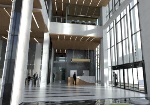 Torre corporativa de 18 niveles de superficie y 5 niveles soterrados para estacionamientos. Equipada con estacionamientos para vehículos eléctricos, gran lobby de llegada con jardín interior, dos niveles con salones de conferencias comunes a toda la torre, cafetería y restaurante en el piso 18 con terrazas que permiten observar toda la ciudad.
